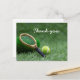 Tennis ball and racket on green grass postcard