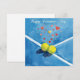 Tennis ball with LOVE on blue court Holiday Postcard
