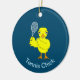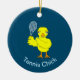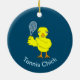 A cute chick holding a tennis racket and ball is a funny gift design for tennis instructors and players.