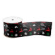 🎄Christmas 🎾tennis black, red and white with green elements Satin Ribbon. White tennis rackets, red, white and green tennis balls on black background.