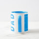 Creative tennis mug featuring a tennis ball on a bright blue tennis court. Edit text to add name or monogram initials of your favourite tennis dad, player, coach or sports lover.