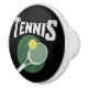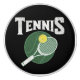 Retro style grunge "Tennis" text design with yellow and green tennis balls and racket decoration