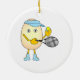 An egghead wearing a visor and holding a tennis ball and racket is a funny gift design for tennis players and fans at birthdays, holidays and special occasions.