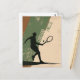 This simple tennis-themed postcard features a silhouette of a tennis player getting ready to take a forehand shot. This is a lovely design for tennis enthusiasts and players.