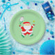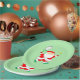 Creative tennis Christmas holiday party plates featuring funny Santa Claus tennis player.