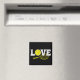 Retro style grunge "Love" text design with yellow tennis ball and racket decoration