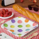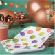Creative tennis party or team event plates featuring colourful festive tennis ball pattern.