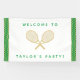 Great your guests in style with this custom banner featuring the text of your choice and gold tennis racquets and balls. Text is customisable. Part of a collection from Parcel Studios. *Note: The gold in this product is simulated. No actual gold foil will be used in the manufacture of this product.