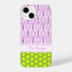 This tennis-themed design uses tennis balls create a bright polka dot pattern, and there is a further pattern using tennis rackets. A white stripe gives space for you to personalise with a name or other text. Background colour: pale pink and soft green.