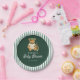 The green and white striped background, inspired by country club elegance, complements the adorable Preppy Tennis Bear illustration — dressed in his signature sporty outfit. Perfect for coordinating with matching napkins and invitations, this paper plate adds a polished, preppy touch to your table décor while celebrating your little one in timeless style.
