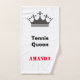A customisable hand towel with the text "Tennis Queen" and the name. On top a crown for the queen.