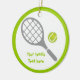 Tennis racket and ball round ceramic ornament festuring a grey racket, a green tennis ball and your text on white background with green border. This cool design is a template and it is completely customisable. The perfect gift for the tennis player or tennis lover in your life. Some elements courtesy of vectorportal.com.