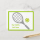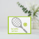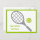 Tennis racket and ball horizontal postcard that features a grey racket, a green tennis ball and your text on white background with green border. This cool design is a template and it is completely customisable. The perfect gift for the tennis player or tennis lover in your life. Some elements courtesy of vectorportal.com.