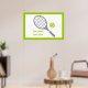 Tennis racket and ball custom gift design featuring a grey racket, a green tennis ball and your text on white background with green border. This cool design is a template and it is completely customisable. Personalise it and add the text “Best tennis player” or monogram, name or your message. The perfect gift for the tennis player or tennis lover in your life. Some elements courtesy of vectorportal.com.