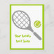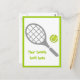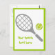 Tennis racket and ball vertical postcard that showcases a grey racket, a green tennis ball and your text on white background with green border. This cool design is a template and it is completely customisable. Personalise it and add the text “Best tennis player” or monogram, name or your message. Some elements courtesy of vectorportal.com.