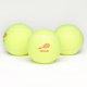 Personalised tennis balls printed with custom name or text in a simple, classic, modern font and simple tennis racquet monogram with red printing. They are perfect for a tennis player birthday gift or tennis theme party decor or favours and are useful modern monogrammed practice balls.