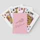 Personalised pink tennis theme playing cards with a cute simple tennis racket graphic and custom name or text in a feminine girly and modern pretty script font monogram. Any girls or women's tennis player would appreciate the elegant look on this modern and minimal useful tennis gift.