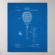 This is a Patent Print of a Tennis Racket with a Blueprint Look.