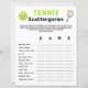 Tennis Scattergories Game is a party game. You have 2 mins to list words that begin with each letter of the word "GAME" for each category below. Points are awarded when players are the only one with that answer! Most points wins!