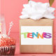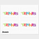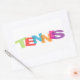 Tennis slogan Rectangular Sticker with colourful rainbow typography.