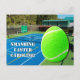 Unique Easter card for Tennis player. Tennis Ball Easter Egg with real blue tennis court in a background. Customisable text fields.