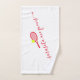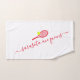 Personalised tennis team name hand towel in Red and White with a tennis racket design and custom text in a feminine modern script font. Any girls or womens tennis teammate would appreciate the elegant look on this modern and minimal useful tennis themed gift.