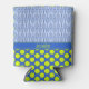 Tennis balls create a bright polka dot pattern on a blue background on both the front and the back of this fun can cooler for tennis fans. On the front, tennis rackets are also used in a complementary pattern, and there is a blue stripe for you to personalise with a name or other text.