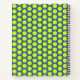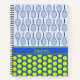 Tennis balls create a bright polka dot pattern on a blue background on both the front and the back of this notebook. On the front, tennis rackets are also used in a complementary pattern, and there is a blue stripe for you to personalise with a name or other text.