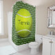 Tennis Tiled Text Design Shower Curtain, featuring a large tennis ball on the background colour of your choice with a tiled text design. Text can be changed tor text of your choice. Longer or shorter words can be managed by increasing or decreasing the text size.