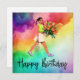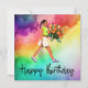 Tennis Woman Holds Bunch of Flowers Birthday Card