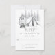 Tent, Lantern and Woodland Sketch Camping Wedding RSVP card in Grey and White. ^