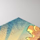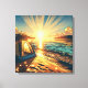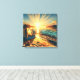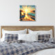 Pretty beach camping themed vintage Canvas Art with an ai illustration of a tent on a beach as the sun is rising. Ai illustration done in a hyper realistic comic book style art.