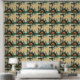 If you are looking to use stick and peel wallpaper in a cabin or camping themed summer house then here ya go. These graphics are forest green and tan vintage colours and are a repeated pattern of tents and pine trees with a reflection in the water.