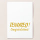 Celebrate a major professional achievement of your colleague, friend, or loved one with this card! The message is a play on the philosopher René Descartes' phrase "Je pense, donc je suis [I think, therefore I am]" ("cogito ergo sum"). The front of the card reads: "YOU THINK," followed by "therefore you are..." in gold foil brush (brushstroke) print and script lettering. Opening the card, the wording continues: "TENURED! Congratulations!" in a matching gold tone. The card itself is white. Perfect for anyone upon getting academic tenure!