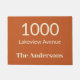 The house number and street name are above the text for your family name or custom message on this terra cotta doormat. The text is beige. All text can be edited or deleted