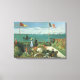 Terrace at the Seaside, Saint-Adresse (balcony on the sea) (1867) by Claude Monet is a vintage impressionist fine art nautical painting. There are two french flags flying in the wind and boats sailing in the sea. A seascape featuring several people enjoying a sunny day in the garden by the ocean.