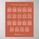 Terracotta 19 Table Wedding Seating Chart Poster, please personalise the names of the couple and the names of the guests along with any of the other text that you may wish to personalise. A stylish seating chart poster featuring elegant white text on a lovely terracotta colour background.