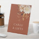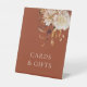 Terracotta Autumn Wedding Pedestal Sign. This classic cards and gifts tabletop sign blends warmth and style, showcasing hand-painted watercolor details of fall leaves and florals in terracotta, copper, and cream tones. Set against a rich copper background, it complements your wedding décor effortlessly—add your names or date for a polished, personalised look.