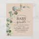 Budget Terracotta Eucalyptus Greenery Succulent Botanical Watercolor Spring Gender Neutral Baby Boy or Baby Girl Baby Sprinkle Shower Invitations on white background - includes beautiful and elegant script typography with modern botanical leaves and greenery for the special Mother to Be celebration.