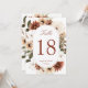 Terracotta Boho Pampas Grass Floral Wedding Table Number Card.
