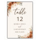 Terracotta Boho Rustic Fall Floral Wedding Table Number
