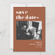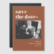 Make a bold first impression with this customisable photo Save the Date magnet featuring terracotta retro typography on a clean layout. Upload your favourite photo and personalise it with your names, wedding date, and location for a vintage-inspired announcement that stands out.