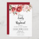 This Terracotta Burgundy Blush Floral Wedding Invitation features a romantic, hand-painted aesthetic perfect for an elegant celebration. The design is anchored by a lush arrangement of watercolor roses in deep crimson and soft blush tones that frame the top of the card.