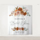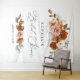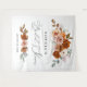 Elegant terracotta and burnt orange floral bridal shower tapestry, perfect as a photo backdrop or décor feature.