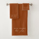 A beautiful Terracotta Burnt Orange design incorporating signature script font typography. A classy and stylish bathroom towel set design ideal for anyone. Customise the gold monogram text and script typography bathroom towel set and make it your own!