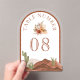 Elegant desert theme wedding table numbers featuring a beautiful watercolor desert landscape and rustic flowers.