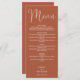 This terracotta elegant script wedding menu can be personalised with all your special wedding day menu, names and special date. Designed by Thisisnotme©