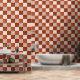 Inspired by Mediterranean villas and rustic Tuscan interiors, this earthy checkered design blends rich terracotta, burnt clay, soft sand, and warm cream tones to create a cozy yet elevated statement wall.