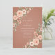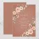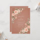This design features a warm terracotta backdrop decorated with delicate watercolor peach roses and soft sage green eucalyptus foliage. The earthy colour palette creates a romantic and organic atmosphere perfect for seasonal events. Artistic floral sprays offer a sophisticated touch to the rustic botanical aesthetic.