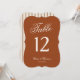 Earthly chic terracotta die cut wedding table number for a refined desert modern wedding reception, featuring a warm burnt orange palette perfect for couples who love quiet luxury style and old money wedding aesthetics. This uniquely shaped modern terracotta design adds a distinctive, elevated touch to your table decor—stylish, memorable, and effortlessly luxe.